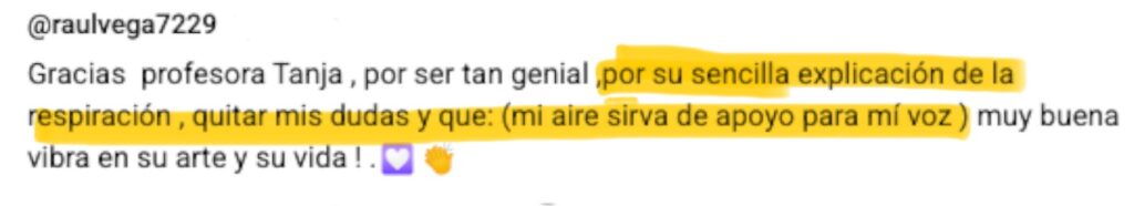 «Todo lo que me ha enseñado Tanja me ha resultado muy útil para aprender a respirar, para aprender a manejar la voz y, en mi caso, para enfrentarme mejor a los agudos.»
